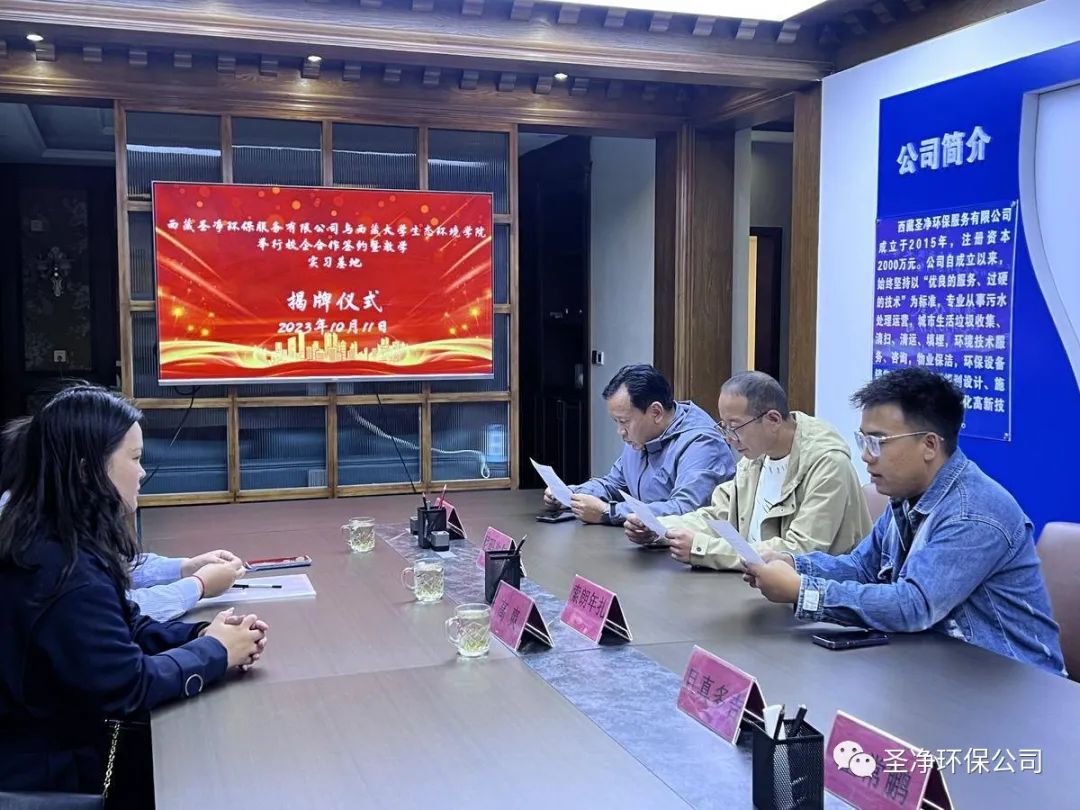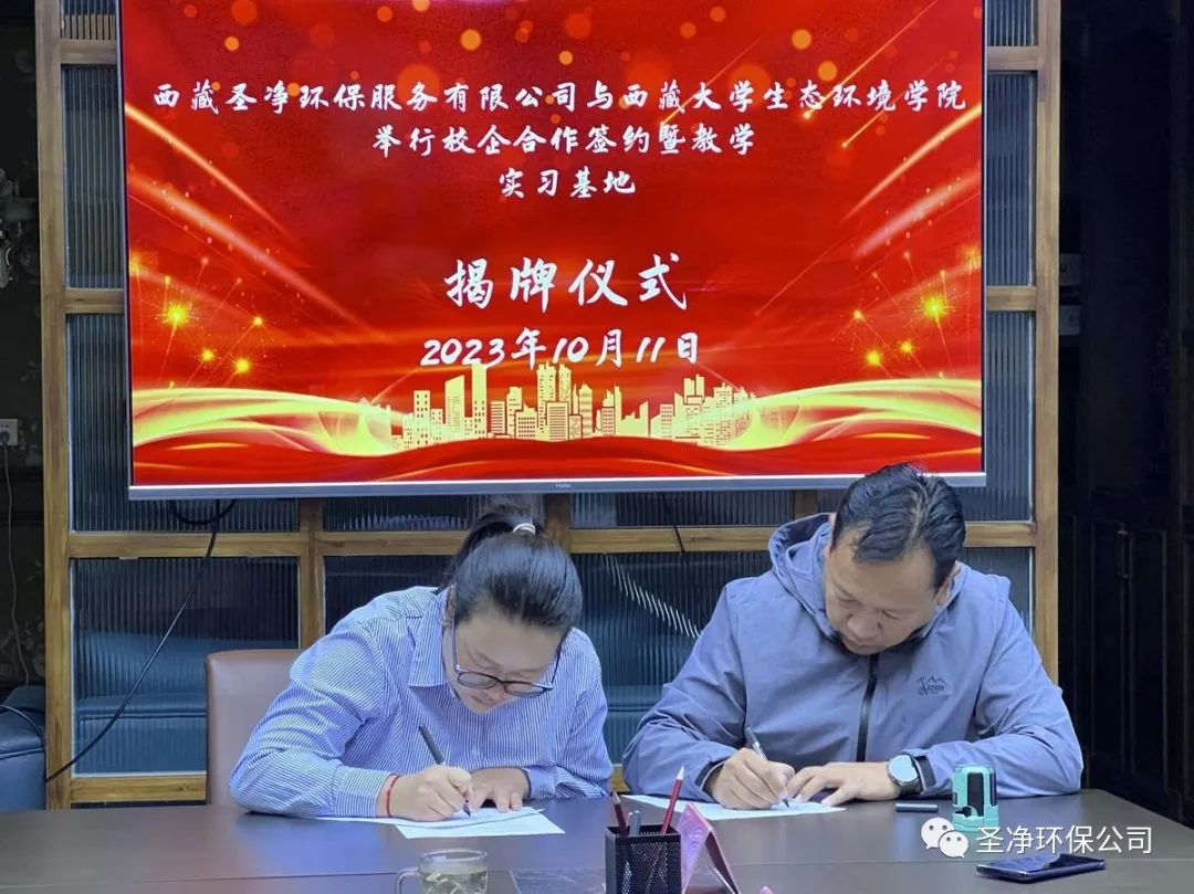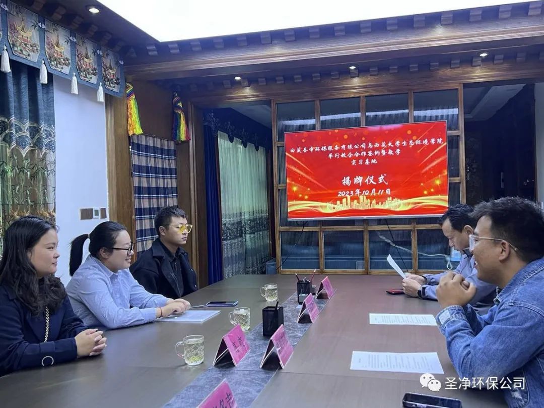 為進(jìn)一步加強(qiáng)學(xué)校與企業(yè)的合作,適應(yīng)產(chǎn)業(yè)發(fā)展的需求,共同做好畢業(yè)生的就業(yè)工作,并建立長(zhǎng)期的人力資源供需協(xié)作關(guān)系,優(yōu)化企業(yè)的人力資源管理,充分發(fā)揮各自?xún)?yōu)勢(shì),促進(jìn)雙方事業(yè)的共同發(fā)展。2023年10月11日,西藏圣凈環(huán)保服務(wù)有限公司與西藏大學(xué)生態(tài)環(huán)境學(xué)院校企合作簽約暨教學(xué)實(shí)習(xí)基地揭牌儀式在我司會(huì)議室舉行。