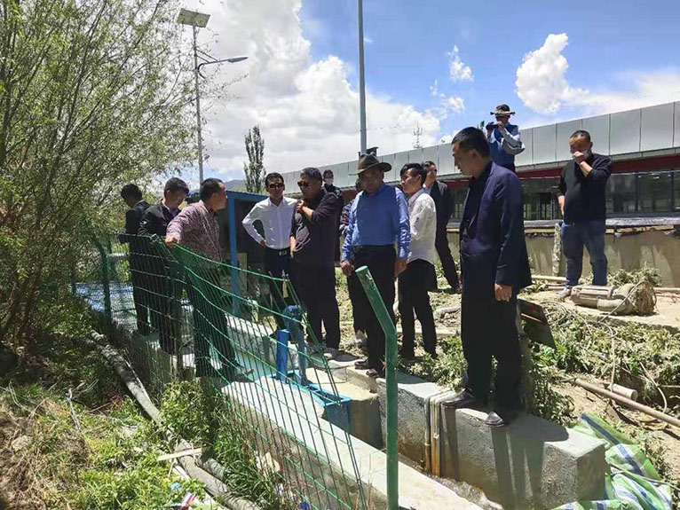 西藏自治區(qū)環(huán)保廳羅杰廳長(zhǎng)等眾多領(lǐng)導(dǎo)蒞臨扎囊縣污水處理廠(chǎng)考評(píng)工作