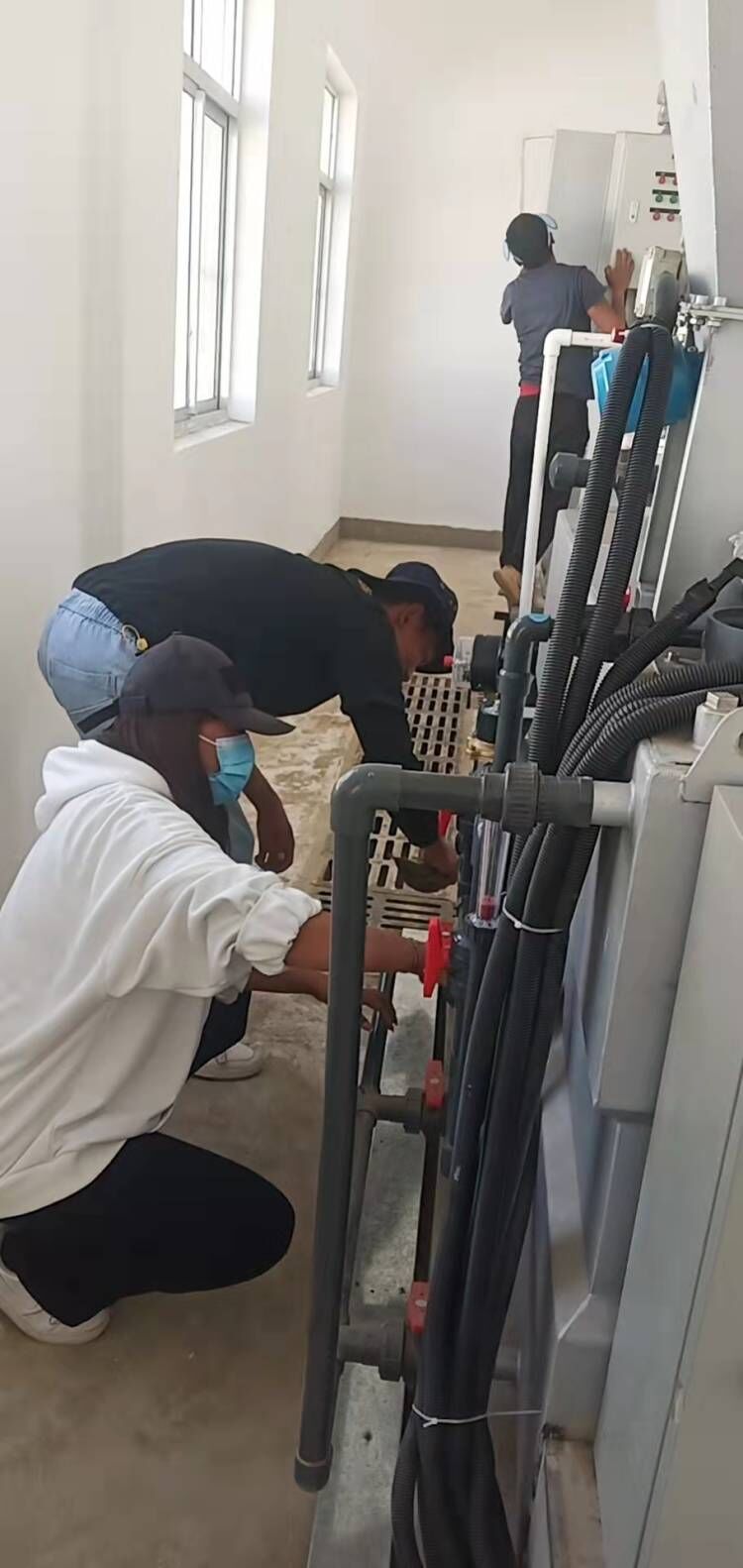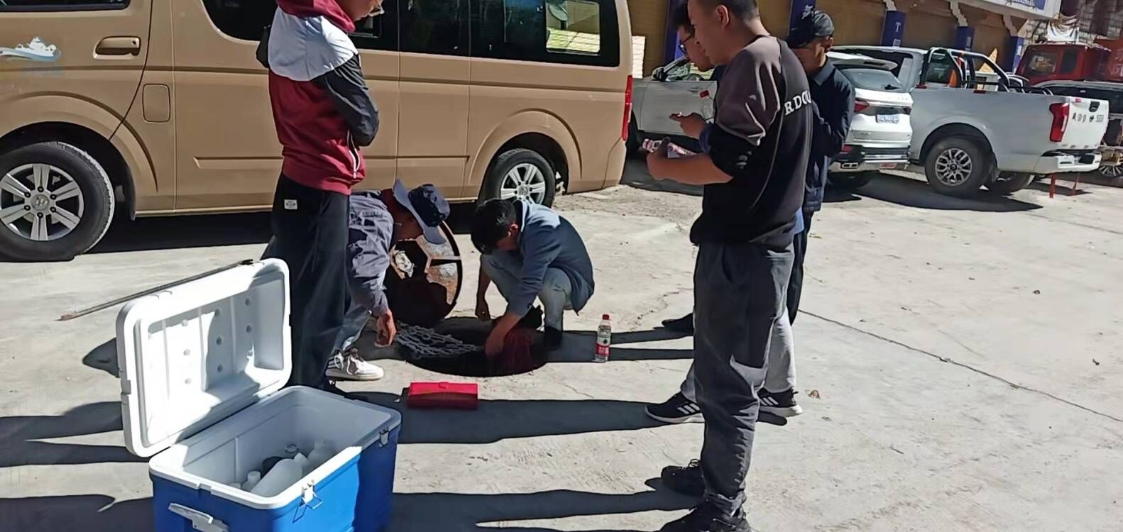 南木林縣污水處理廠工作人員和上級(jí)領(lǐng)導(dǎo)一起排查污水管網(wǎng)
