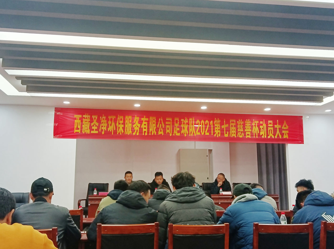 為了迎戰(zhàn)拉薩市第七屆慈善杯足球聯(lián)賽,全方位做好賽前準(zhǔn)備,鼓舞球員們的士氣,增強球員們的信心,西藏圣凈環(huán)保服務(wù)有限公司于2021年11月19日19:30分在藏?zé)嶂新穱身椖抗芾碛邢薰舅臉菚h室召開賽前動員大會。出席本次會議的有總經(jīng)理達瓦、副總經(jīng)理兼商務(wù)部經(jīng)理次仁、副總經(jīng)理尼瑪次仁和球隊教練,列席人員有所有球隊成員和公司代表員工。會議由副總經(jīng)理尼瑪次仁主持,首先副總經(jīng)理尼瑪次仁對球隊成立至今公司各項支持及付出做了總結(jié)講話。然后,球隊教練講解了一些參加比賽時安全隱患的措施。球隊成員代表承諾努力比賽,爭取取得名次,用最佳成績向圣凈環(huán)保公司報喜。隨后,總經(jīng)理達瓦號召球隊所有成員秉承友誼第一、比賽第二的原則,服從裁判,尊重對手。最后,公司副總經(jīng)理兼商務(wù)部經(jīng)理次仁作了動員講話,鼓勵球員銳意進取,奮發(fā)圖強,再創(chuàng)佳績。大會歷時一個多小時,在球員相商戰(zhàn)術(shù)和相互鼓勵中拉下了序幕。通過此次動員大會,所有參賽成員一定會更加重視、全身心的投入到本次比賽中。我們也堅信,在即將到來的慈善杯足球賽上,足球隊成員們會團結(jié)一致,共同拼搏,取得優(yōu)異的成績,再創(chuàng)輝煌,為我公司爭取更多的榮譽,讓“圣凈環(huán)保”的名字響亮在足球場上。